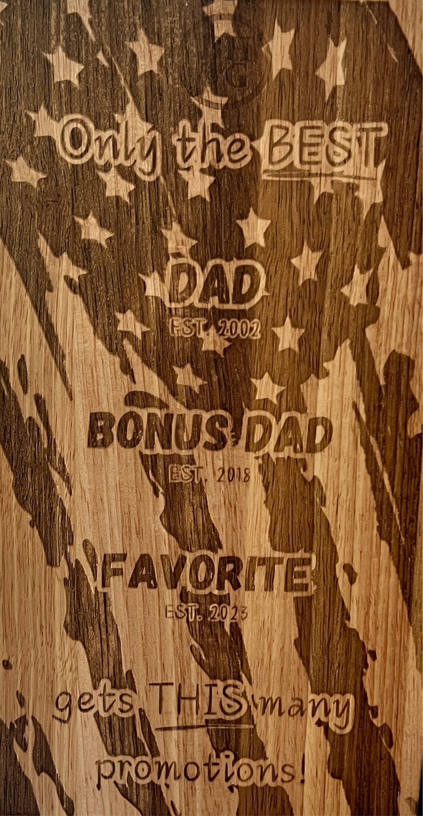 Unleash your creativity with custom art. Your ideas, your pictures, your words, and infinite possibilities come together to create a one-of-a-kind masterpiece. From family names to favorite expressions, let us help you proudly showcase your unique style in your home. Stained and/or painted, engraved and/or layered - we'll bring your vision to life!